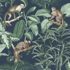 NuWallpaper Nu Wall Self Adhesive Jungle Luxe Navy Wallpaper Paper, Made in the UK, Kids