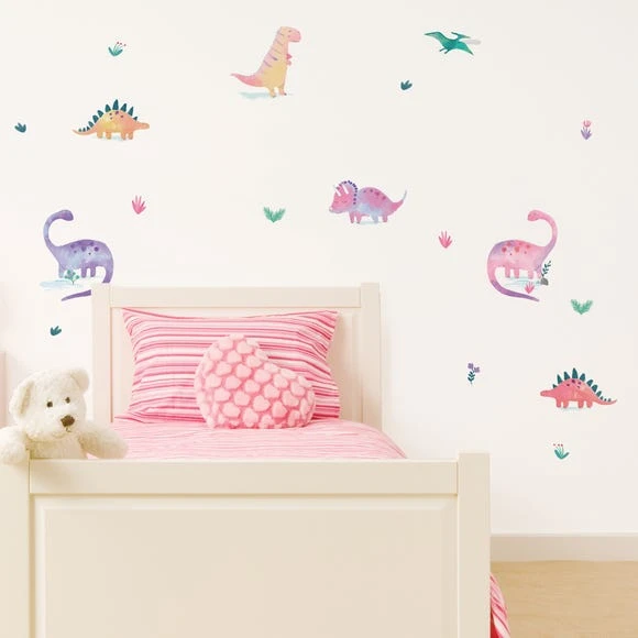 Dunelm Dinosaur Pink Medium Wall Stickers Animals, Made in the UK, Plastic
