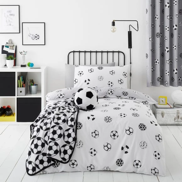 Perfect for football lovers, this reversible football bedding set has two fun and sporty designs your child can choose from. In a grey and white colourway, this bedding set would compliment any bedroom beautifully. Crafted from polycotton this bedding is soft, durable, and machine washable. Other coordinating bedding accessories are also available.