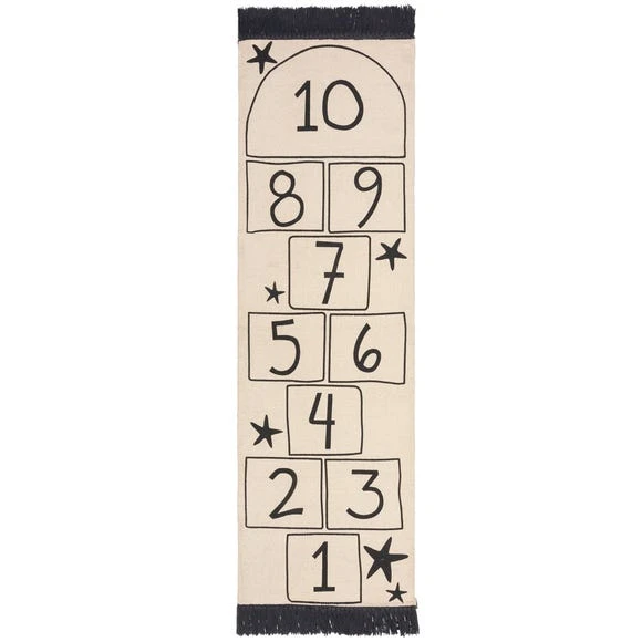 Our Hopscotch Runner is perfect for bringing playtime inside. The fun hopscotch design creates a playful, interactive element. Hand-finished by skilled rug artisans, with a Scandi-inspired tasselled effect. The 100% cotton composition creates a lightweight versatile rug that can be moved around as your little one moves. The low-profile style, means that the Hopscotch Runner can be used in high-traffic areas, perfect for lots of play. We love using the Hopscotch Runner in nurseries, playrooms and bedrooms to add an element of fun!