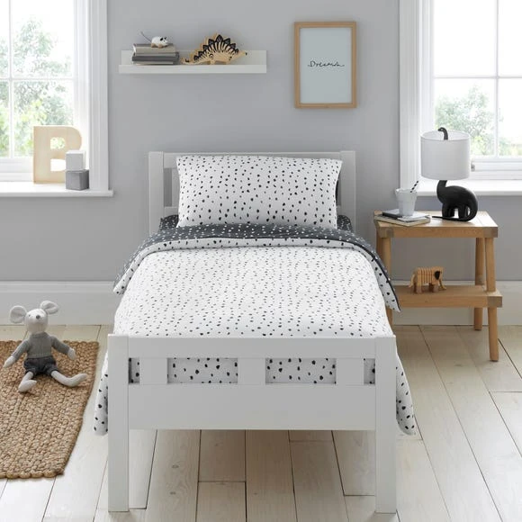 Boasting a modern jersey monochrome design, this duvet cover and pillowcase set is perfect for adding a stylish and contemporary touch to your child’s bedroom. With a fully reversible design, you can choose between two stunning prints. Made from 100% cotton, this bedding set is soft, durable, and machine washable.