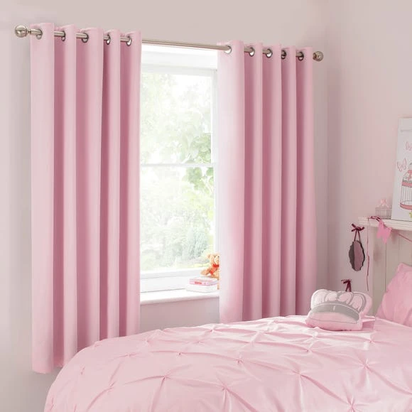 Dunelm Mia Pink Blackout Eyelet Curtains Kids, Polyester