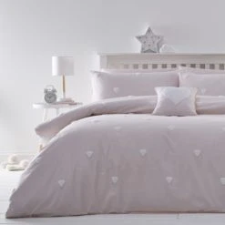Dunelm Pink Tufted Hearts 100% Cotton Duvet Cover and Pillowcase Set Duvet Cover Sets