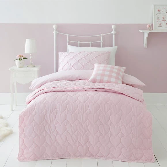 Dunelm Pink Heart Bedspread Polyester, Bedspreads & Runners, Quilted