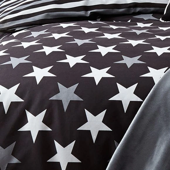 Dunelm Stars Black 25cm Fitted Sheet Striped, Fitted Sheets, Polycotton