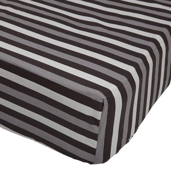 Crafted from a soft polycotton blend, this fitted sheet features white, grey and black horizontal stripes that add a stylish touch to your bedding. This fitted sheet is available in a range of sizes and is perfect for coordinating with any bedding style.