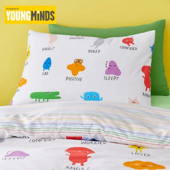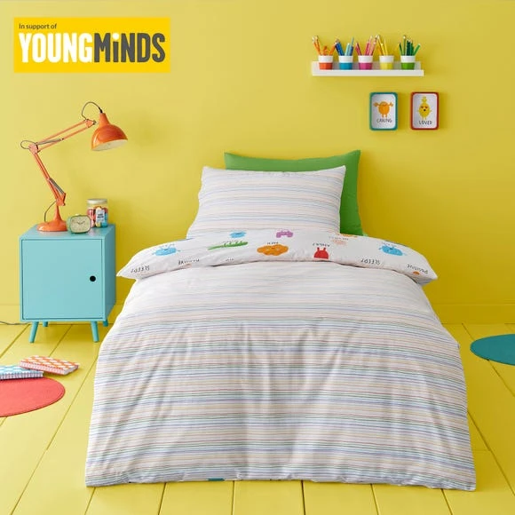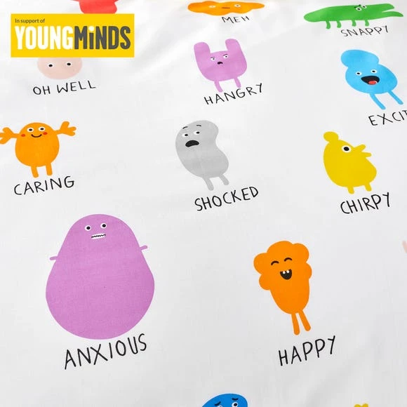 In support of the charity Young Minds, we have created this stunning bedding set with a beautiful reversible face design. This bedding features different emotion characters to help your child understand the different emotions people can feel and how to express these feelings. Crafted from 100% cotton, this bedding set is soft, durable, and machine washable. Other coordinating bedding accessories are also available.