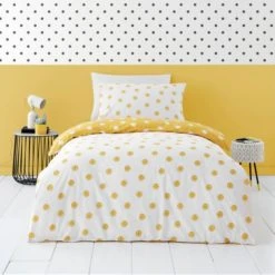 Dunelm Mustard Spotted 100% Jersey Cotton Reversible Cot Bed / Toddler Duvet Cover and Pillowcase Set Duvet Cover Sets, Natural History Museum Modern Skandi